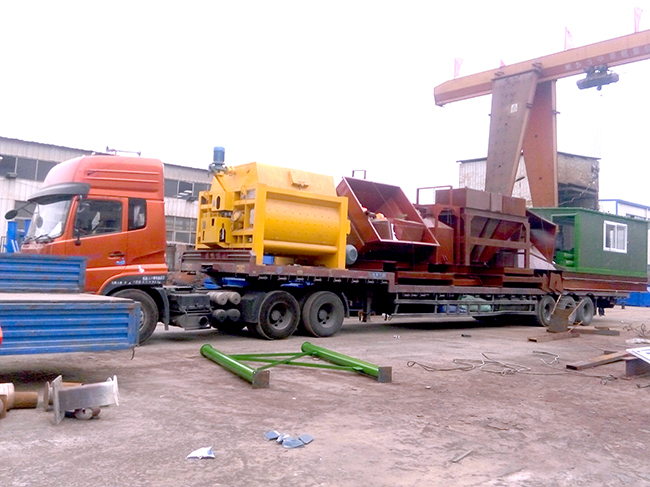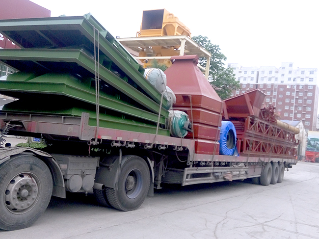 Today is December 2, 2015, a set of HZS180 concrete batching plant produced by Zhengzhou Jianxin Machinery will be sent to Qiqihar in Heilongjiang after the loading finished.
